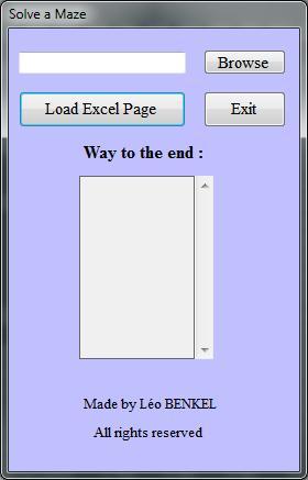 Here is the interface where you can upload an excel page. My algorithm dont find the faster but break all king of maze.